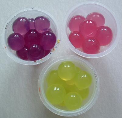 “蜂蜜葡萄珠”是用90%的水和少许白糖、蜂蜜等原料加工而成的一种美丽时尚的新兴小食品,该产品晶莹透明,艳丽多彩,造型逼真,极其美观,给人以鲜嫩之感。想其形口水欲滴,观其色望梅止渴,食之则酸甜可口,解渴生津,常食不厌。人人爱吃,老少皆宜。夏食可消暑,冬食能健胃。其配方独特,选料考究,产品含有丰富的钙质,并含有铁、碘、锰等人体必需的营养素,因而该产品在医疗作用方面具有特殊的保健效用。常食可减肥降脂,清火利尿,清食润肠,醒酒安神,健肤美容,深受大众喜爱,市场前景非常广阔。