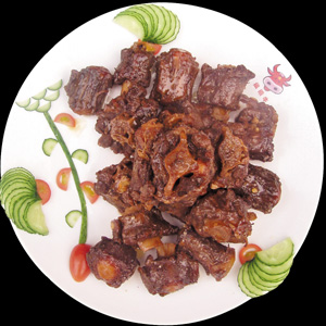 怪味牛骨头表面一层红黄色的骨膜及软肋、脆杂等,其味香、脆、麻,辣,回味无穷。制做时以取牛排骨的前端软排骨(俗称凤凰翅)为最佳,按配方加入各种中药材和调料,加温即成。工艺简单,配方严格科学。本品食之有味、过瘾,香而不腻,让人恋恋不忘,久久回味。牛骨头干吃更是饮食文化的经典之作。